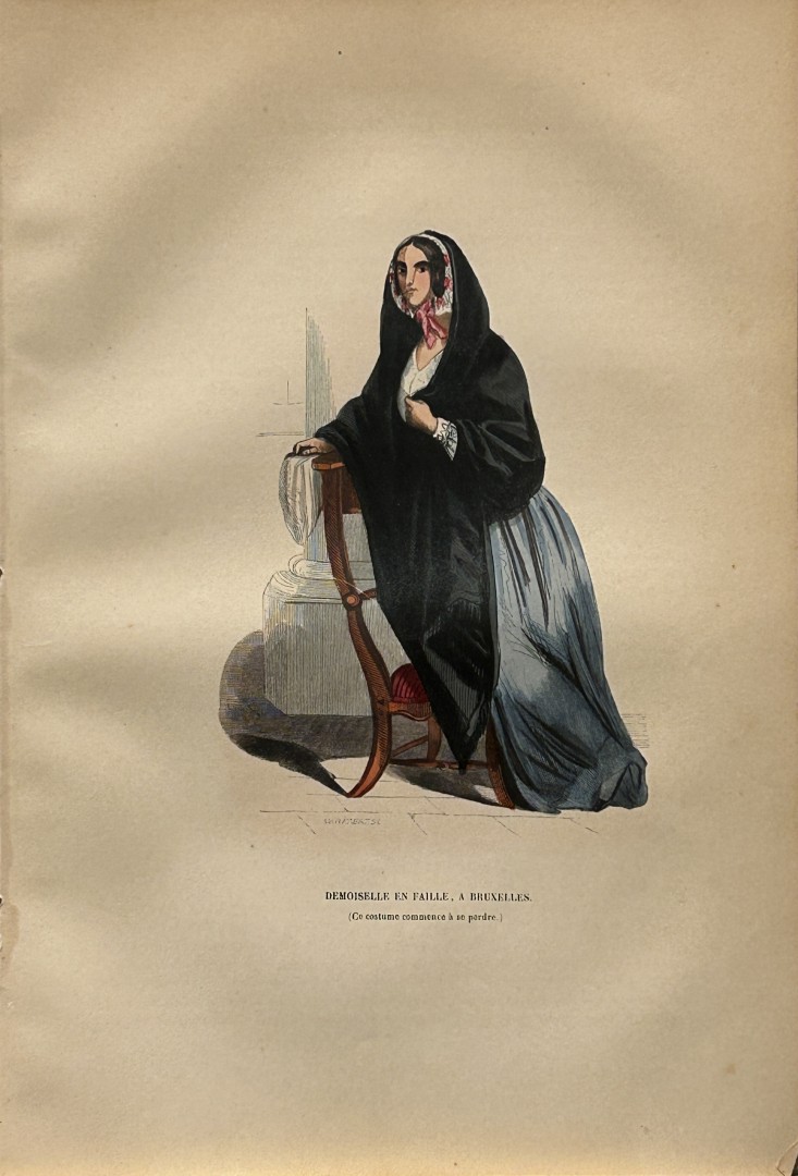 Lot 13516: A Wahlen - Woodcut engraving of lady from Brussels 1843