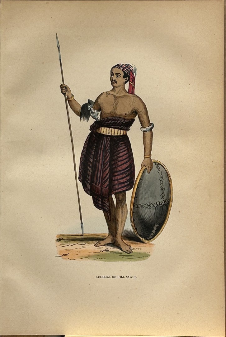 Lot 135571: A Wahlen - Woodcut engraving of warrior from Sawoe Island 1843