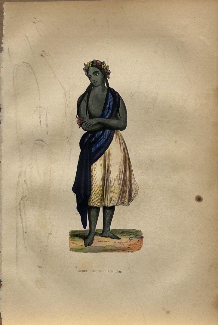 Lot 135582: A Wahlen - Woodcut engraving of young girl from Pitcairn Island1843