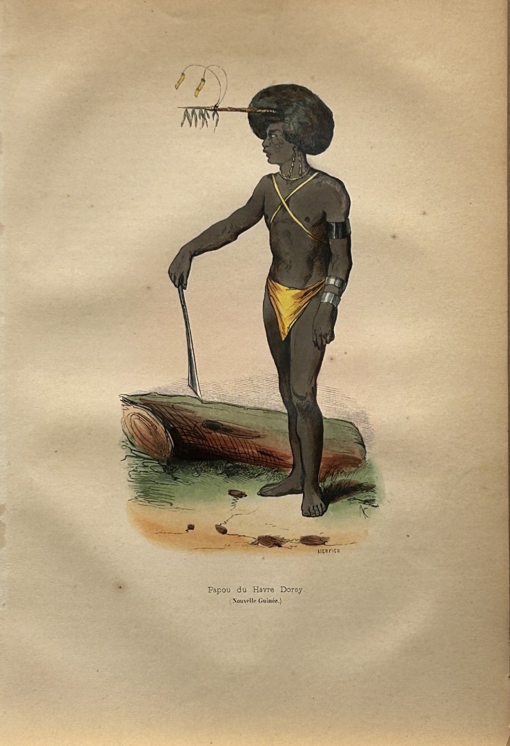 Lot 135588: A Wahlen - Woodcut engraving of Papuan from Dorey Harbour 1843