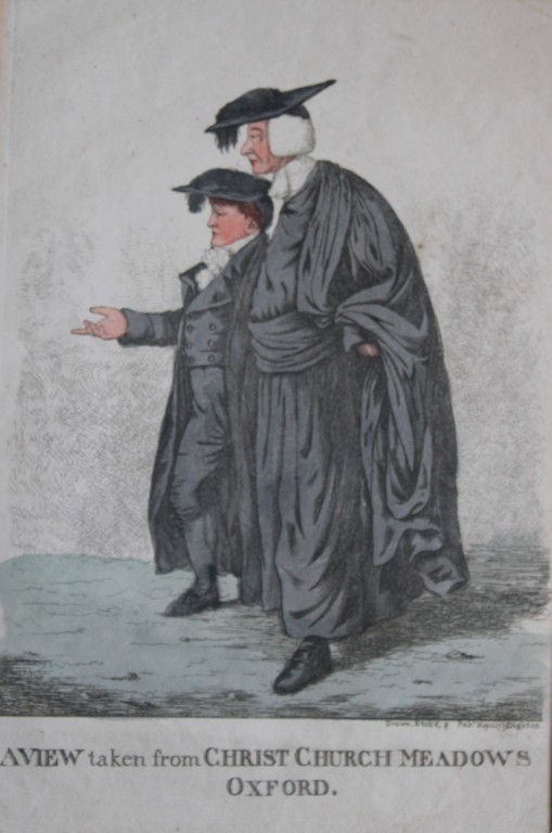 Hand coloured aquatint caricature of Oxford and Cambridge university fellows by Robert Dighton (1751-1814). Published in London: Robert Dighton, 1807