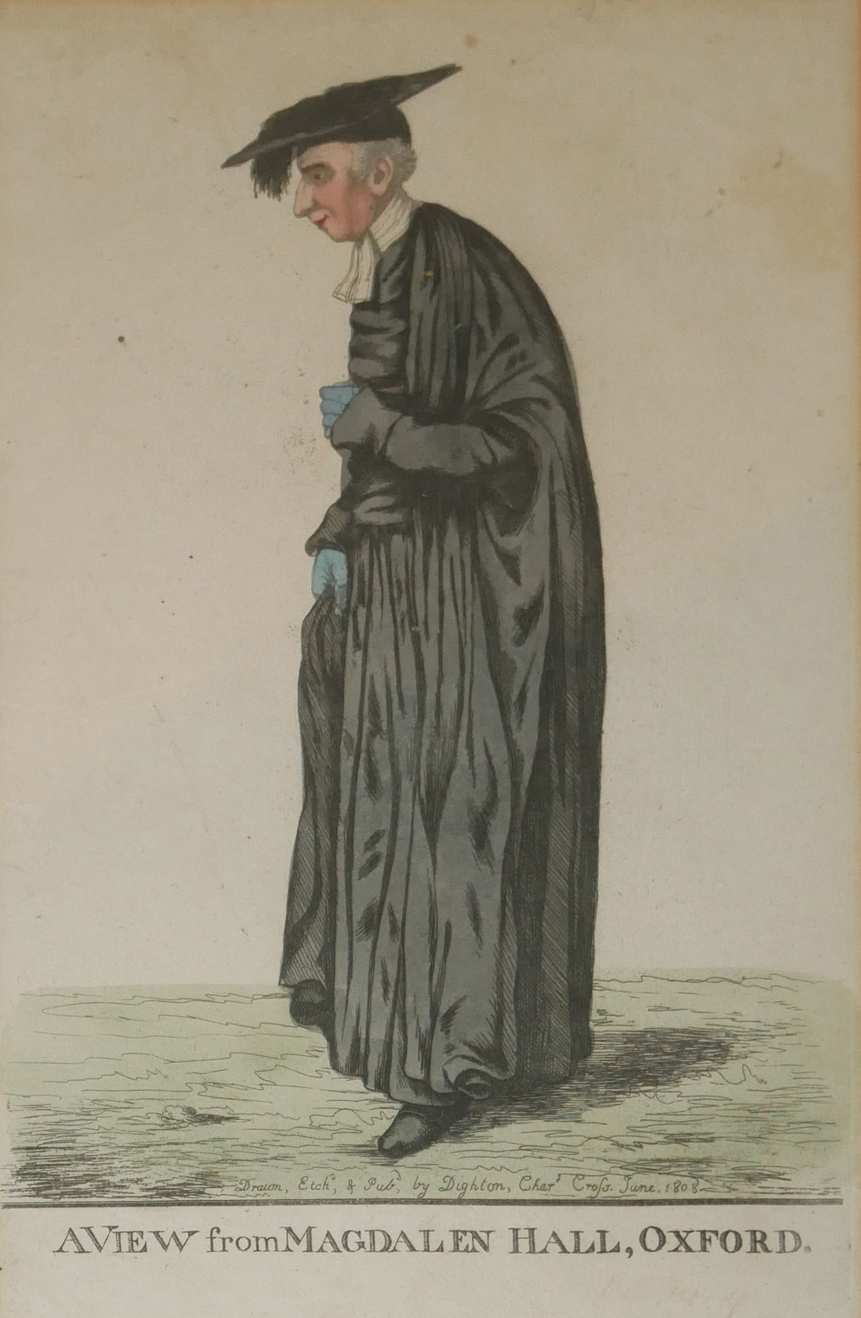Hand coloured aquatint caricature of Oxford and Cambridge university fellows by Robert Dighton (1751-1814). Published in London: Robert Dighton, 1807