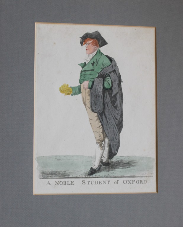 Hand coloured aquatint caricature of Oxford and Cambridge university fellows by Robert Dighton (1751-1814). Published in London: Robert Dighton, 1807