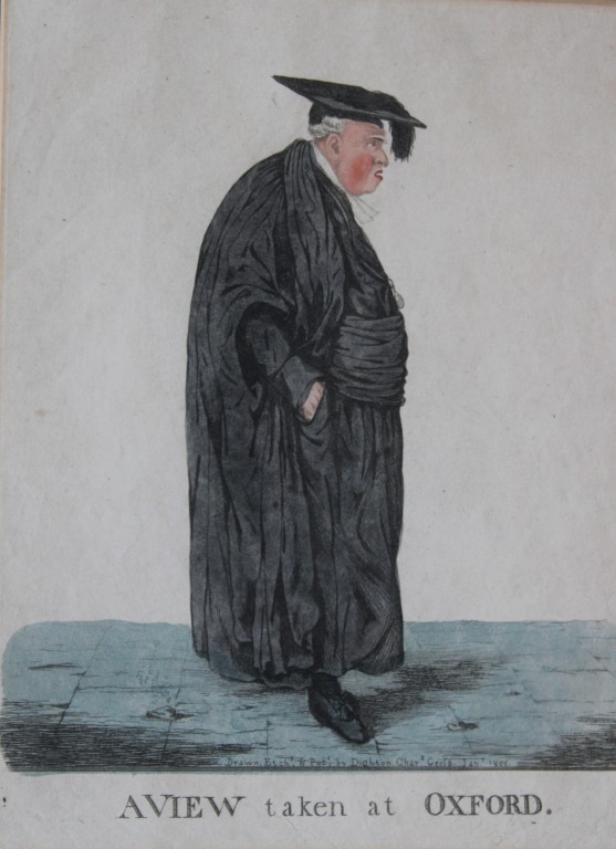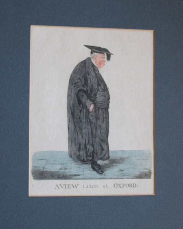 Hand coloured aquatint caricature of Oxford and Cambridge university fellows by Robert Dighton (1751-1814). Published in London: Robert Dighton, 1807