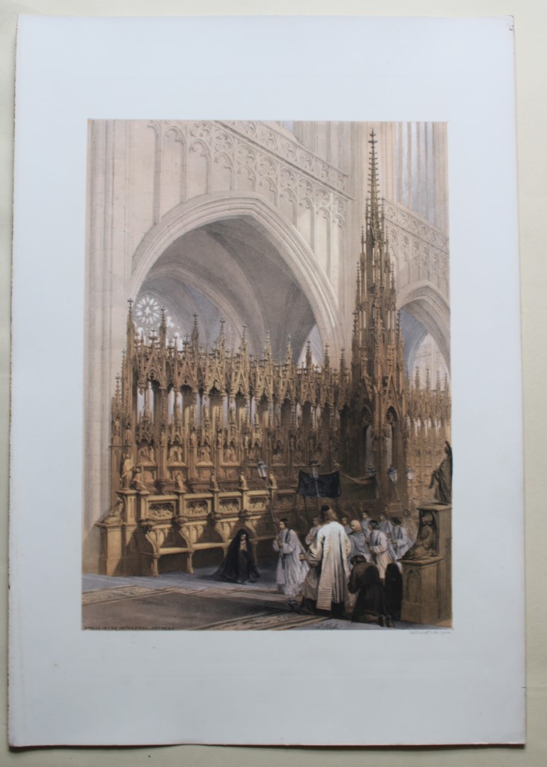 These two lithographs of the Town Hall, Antwerp and the Stalls in the Cathedral, Antwerp are from Sketches in Belgium and Germany with drawings by Louis Haghe. Published by Henry Graves & Co., London and printed by Day and Haghe 1840.