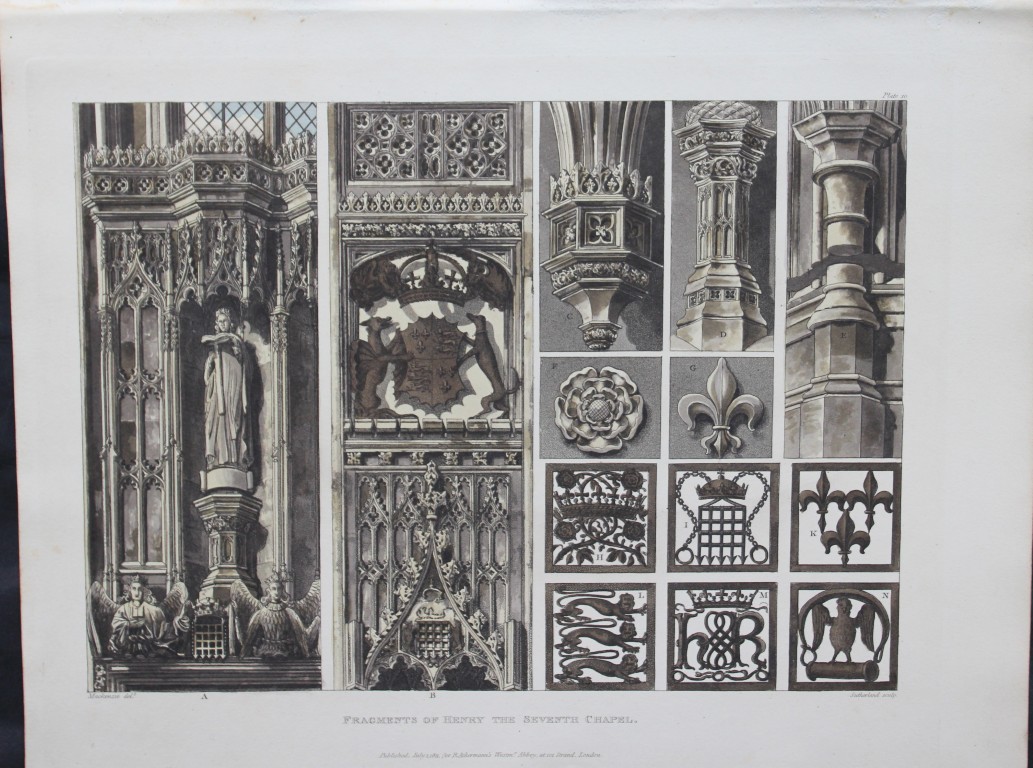 Lot 15317: F Mackenzie- Henry VII fragments in Westminster Abbey by T Sutherland 1812