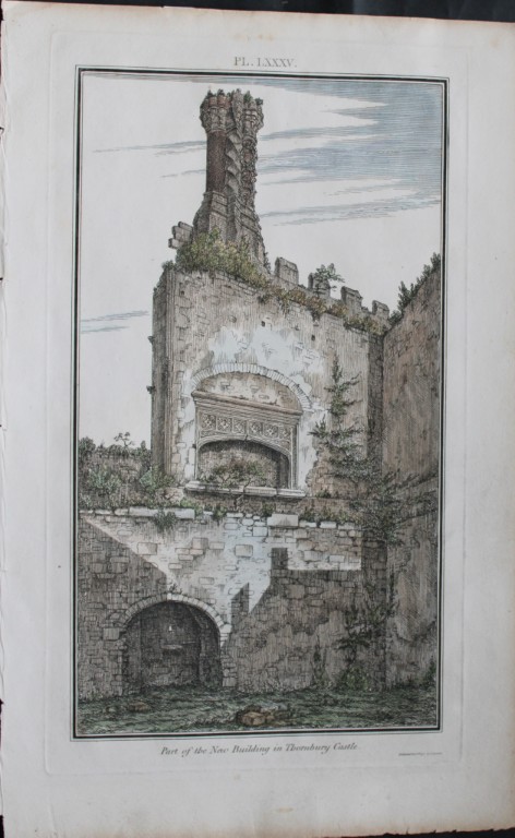 This hand coloured engraving entitled Part of the new building at Thornbury Castle in Gloucestershire is by Samuel Lysons, dated 1802.