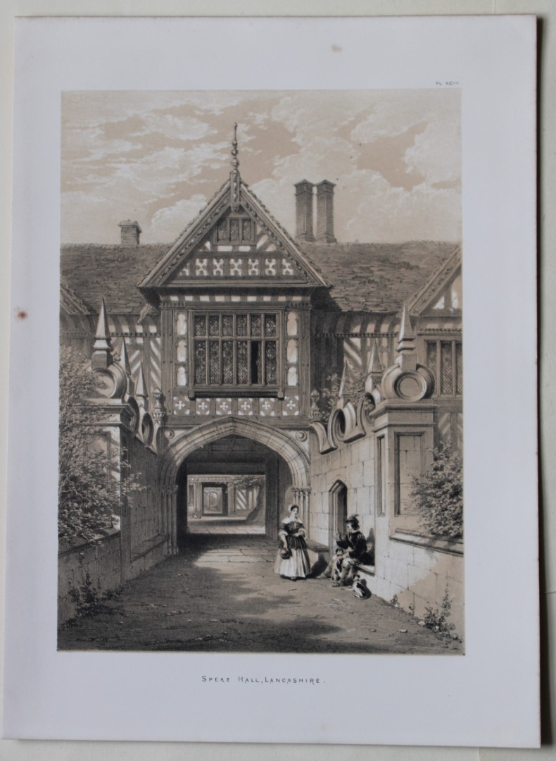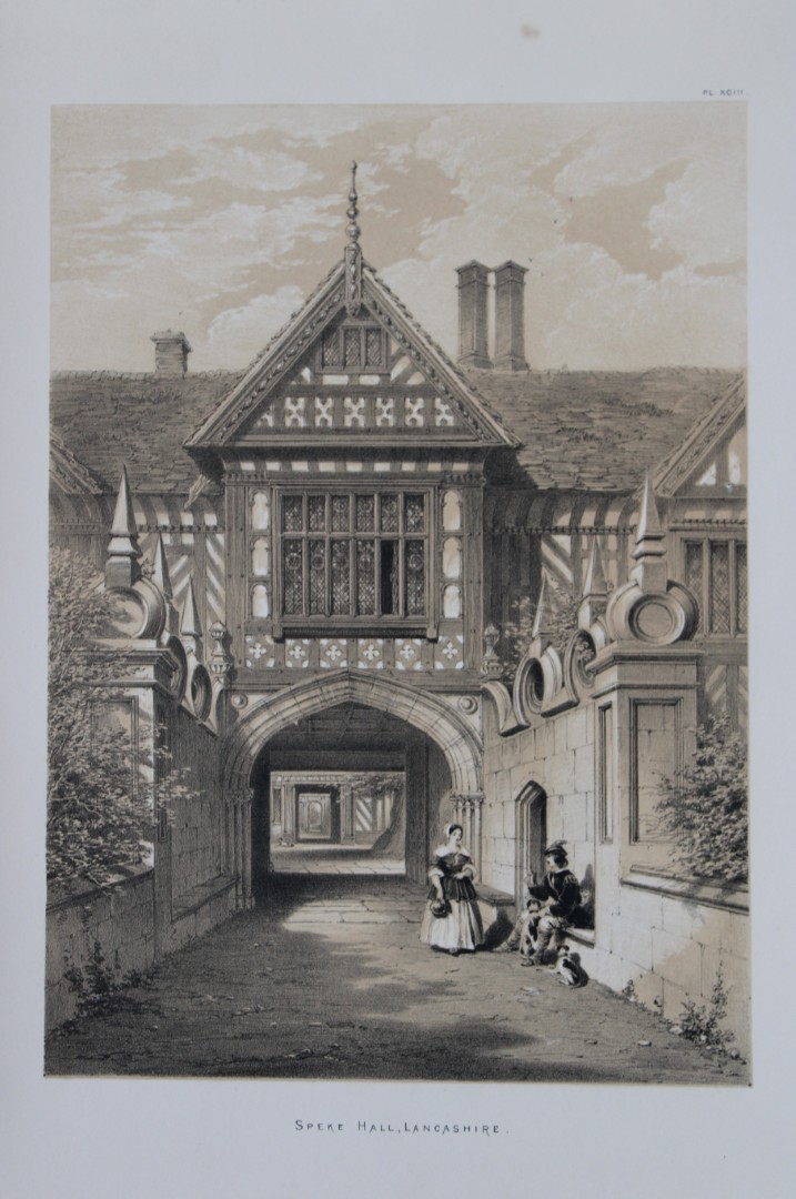 This lithograph of Speke Hall, Lancashire is from The Mansions of England in the Olden Time by Joseph Nash. Printed by M & N Hanhart and published by Henry Sotheran & Co., London, in four parts from 1869-1872.