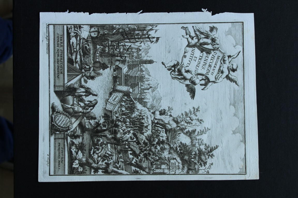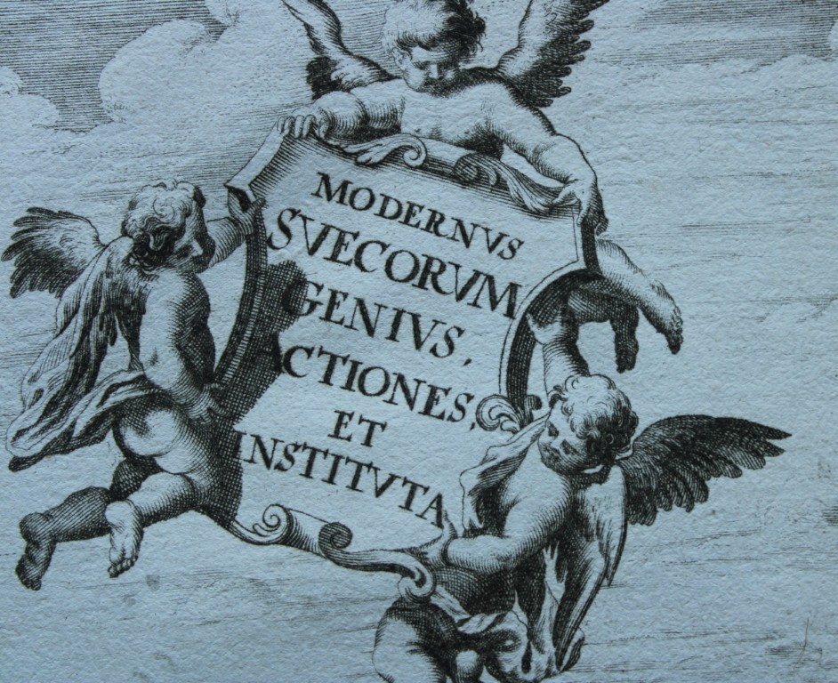 Inscription reads: Modernus Suecorum Genivs, Actiones et Institvta (Modern Swedish Genius, Actions and Institutions)