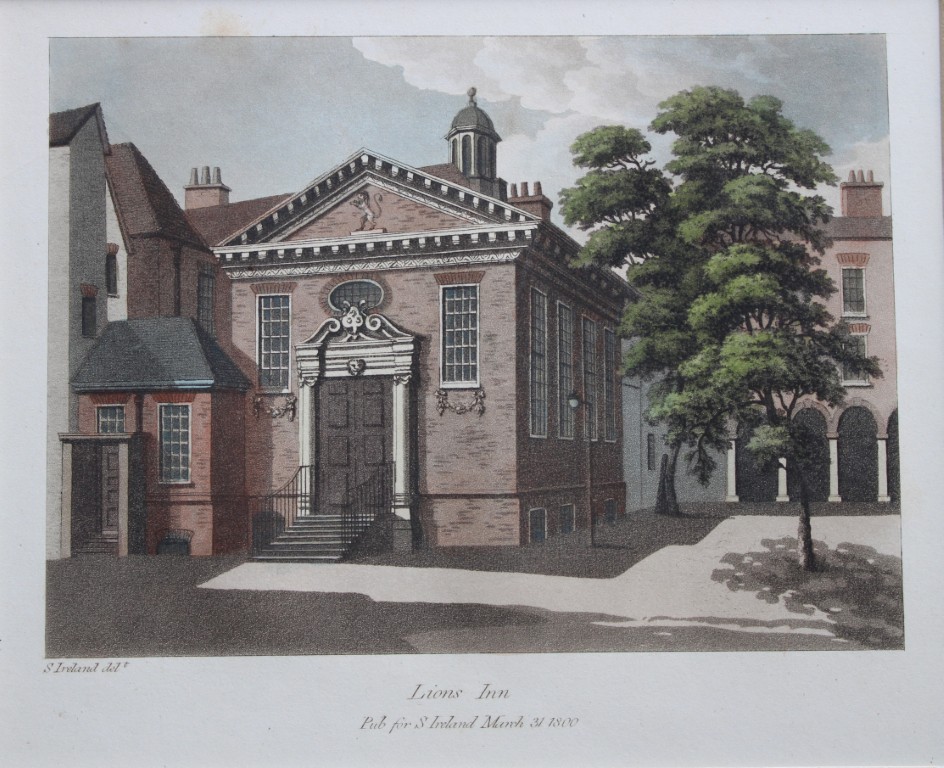 Lot 16527: Samuel Ireland - aquatint of Lions Inn, London 1800