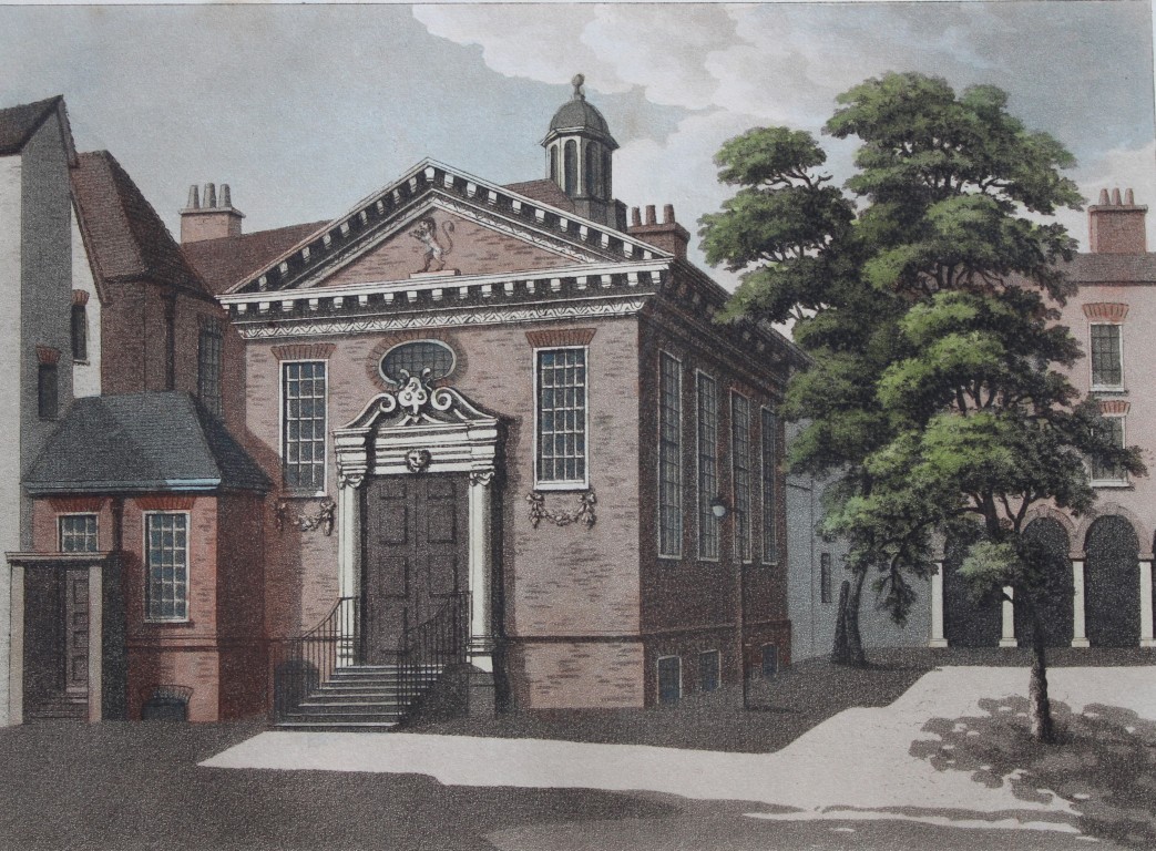 This bistre aquatint etching is from Picturesque Views with an Historical Account of the Inns of Court by Samuel Ireland. Published by R. Faulder and J. Egerton, London 1800.