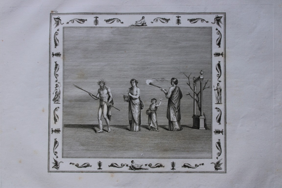 This rare copperplate engraving is from Collection des Tableaux et Arabesques Antiques, trouvés a Rome, dans les ruines des Thermes de Titus by Nicolas Ponce. Paris, Brussels, Lyons etc: 1805.
