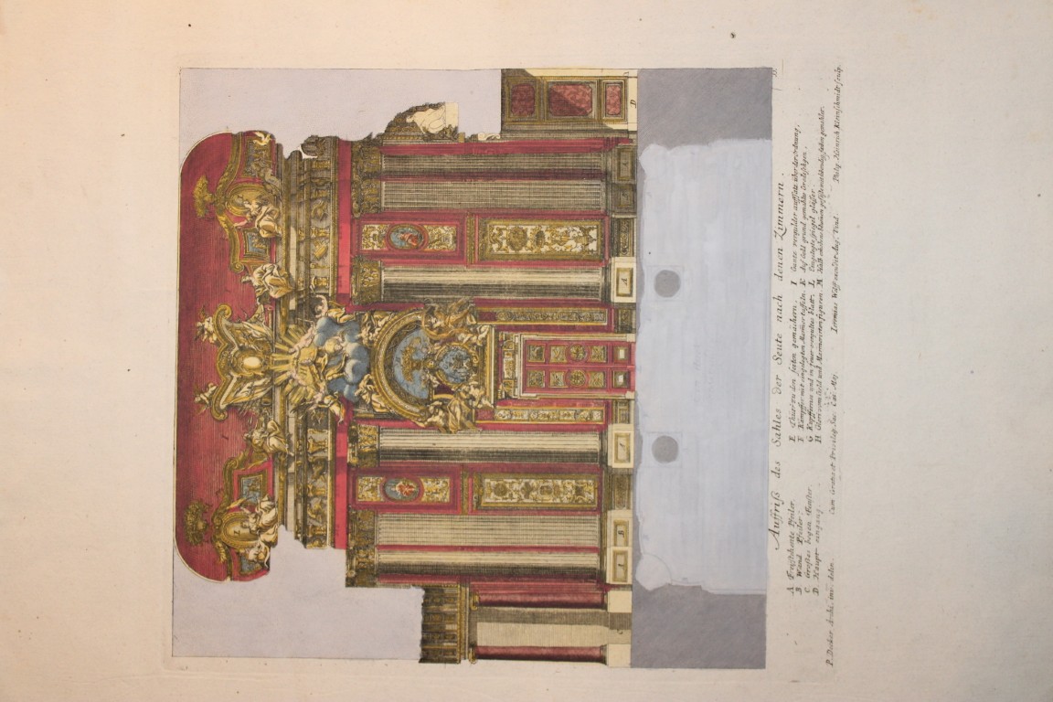 This beautiful hand coloured copperplate engraving is from Fürstlicher Baumeister, Oder Architectura Civilis (The Princely Architect or: Civil Architecture) by Paul Decker the Elder and engraved by Carl Remshart.