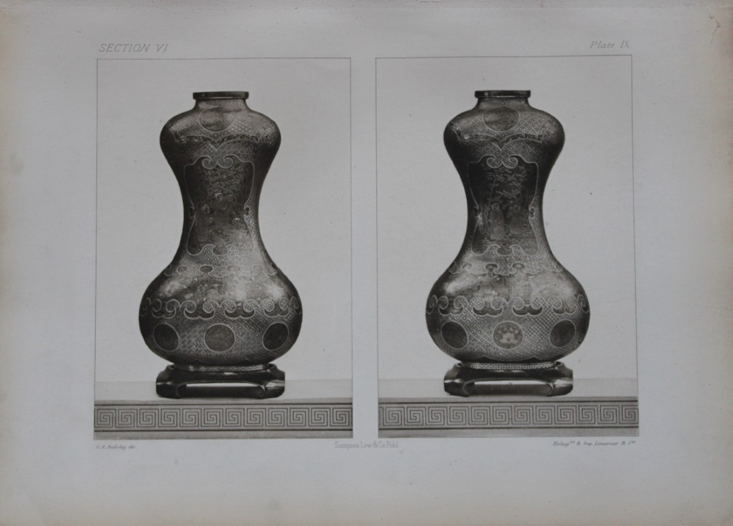 This beautiful chromolithographic print is from The Ornamental Arts of Japan by George Ashdown Audsley. 1st edition, published by Sampson Low, Marston, Searle, & Rivington, London 1882-4,