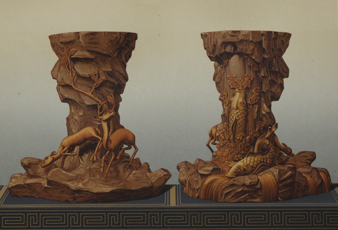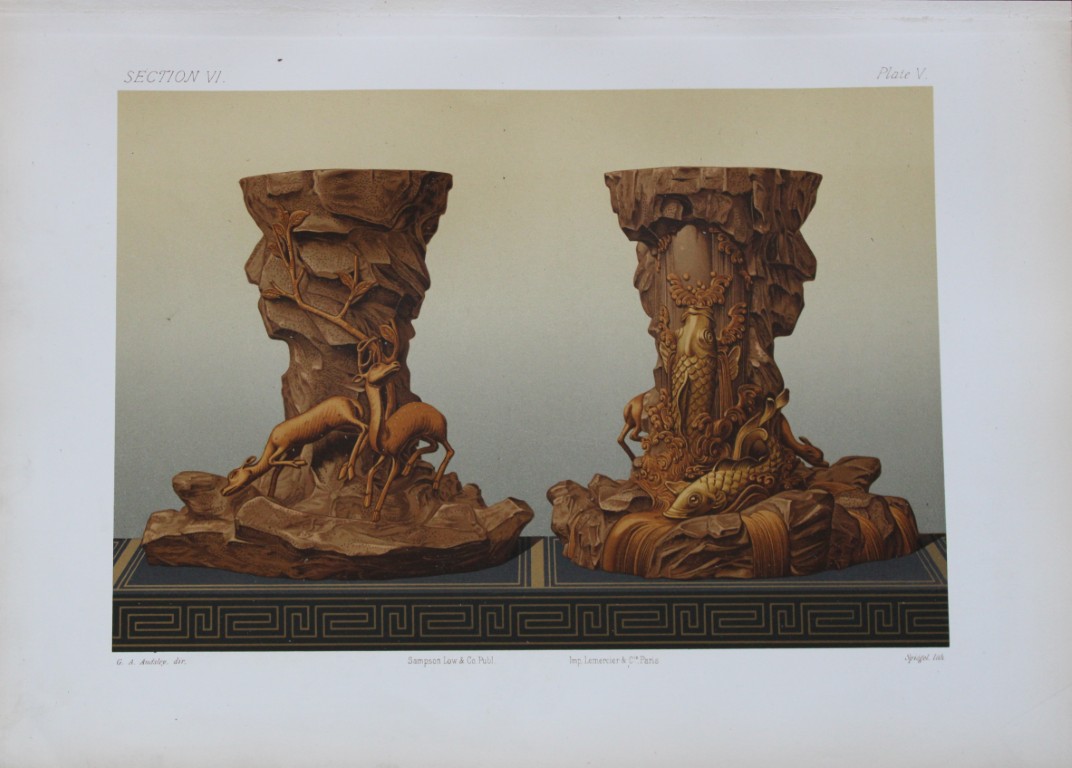 This grand work has been hailed as the most beautiful art book of the late 19th century. It contains text and plates in nine sections on painting, embroidery, textiles, lacquer, incrusted work, metal-work, cloisonné enamel, modeling and carving, and heraldry.