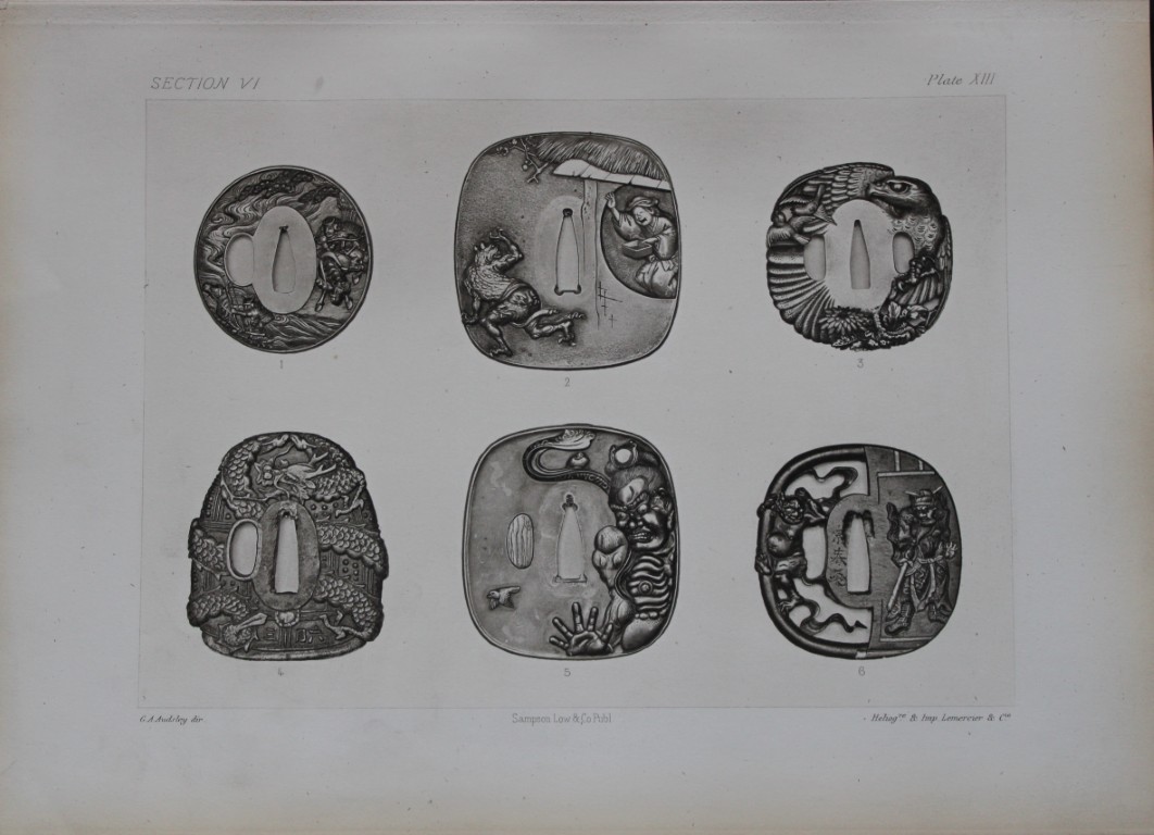 This beautiful chromolithographic print is from The Ornamental Arts of Japan by George Ashdown Audsley. 1st edition, published by Sampson Low, Marston, Searle, & Rivington, London 1882-4,