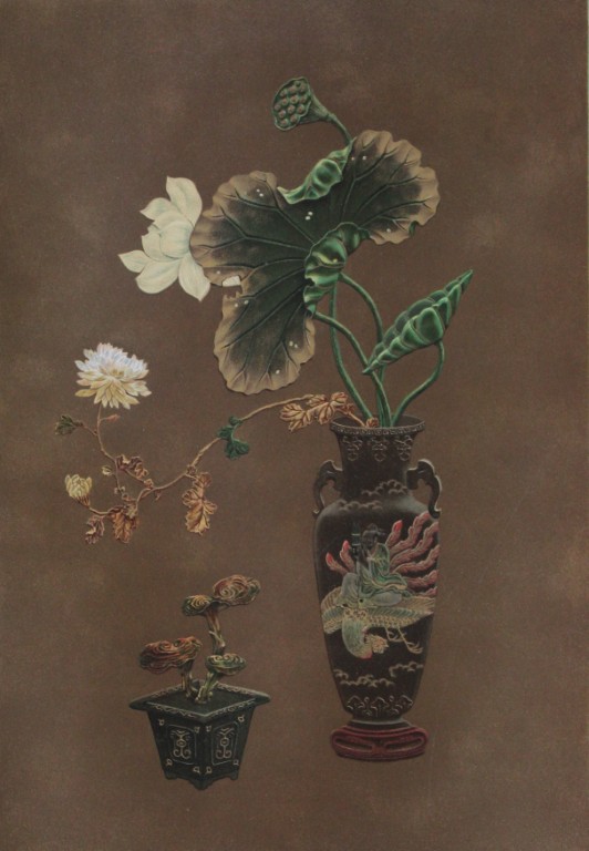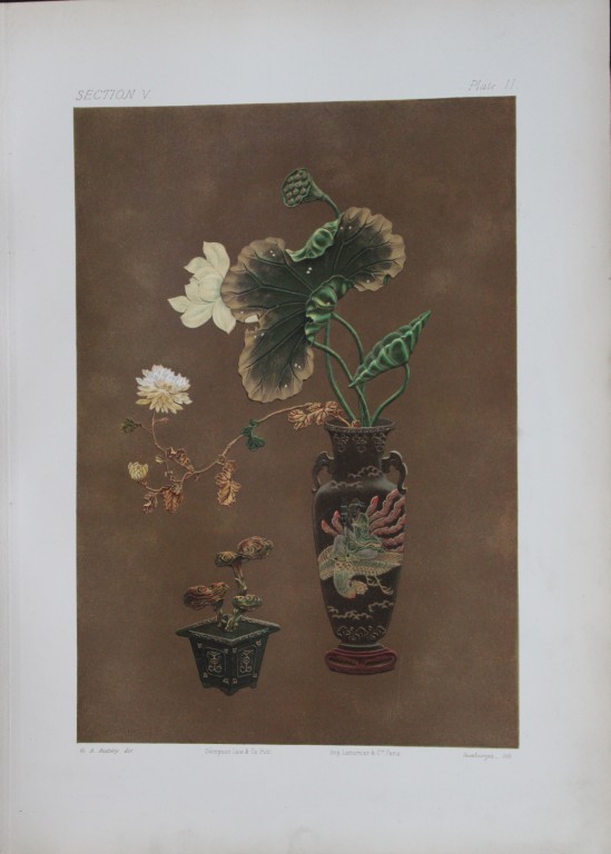 This beautiful chromolithographic print is from The Ornamental Arts of Japan by George Ashdown Audsley. 1st edition, published by Sampson Low, Marston, Searle, & Rivington, London 1882-4,