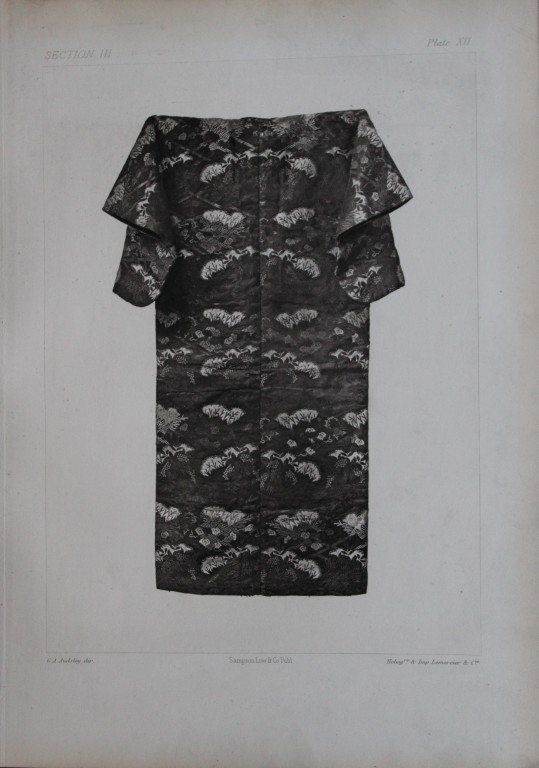 This beautiful chromolithographic print is from The Ornamental Arts of Japan by George Ashdown Audsley. 1st edition, published by Sampson Low, Marston, Searle, & Rivington, London 1882-4,