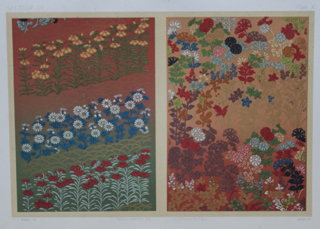 This beautiful chromolithographic print is from The Ornamental Arts of Japan by George Ashdown Audsley. 1st edition, published by Sampson Low, Marston, Searle, & Rivington, London 1882-4,