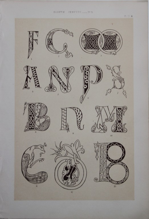 This beautiful chromolithographic print is from The Art of Illuminating as Practised in Europe from the Earliest Times by W R Tymms and M Digby Wyatt. Published by Day & Son, London 1860. 1st Edition.
