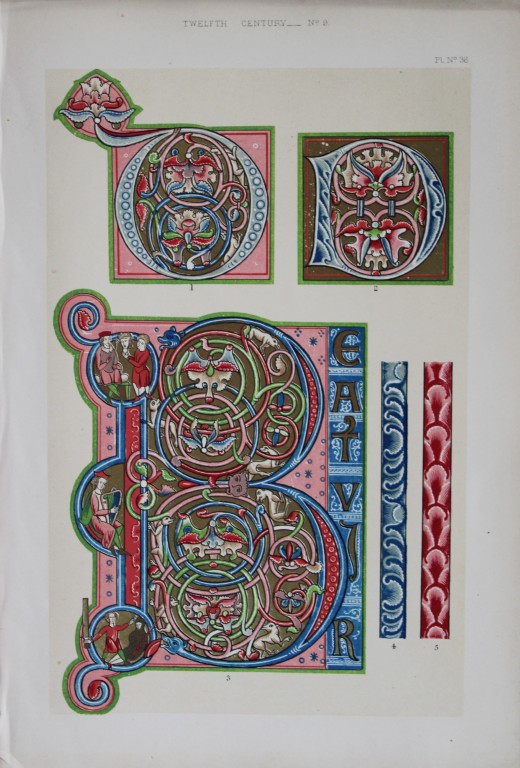 This beautiful chromolithographic print is from The Art of Illuminating as Practised in Europe from the Earliest Times by W R Tymms and M Digby Wyatt. Published by Day & Son, London 1860. 1st Edition.
