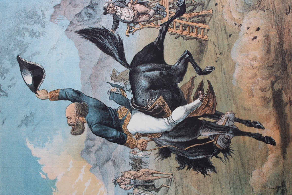 Lot 18147: Tom Merry political cartoon - Riding the Buck Jumpers 1887