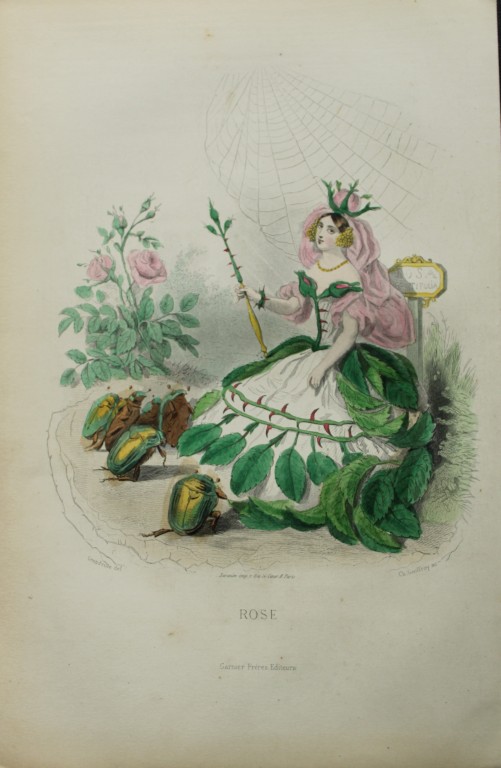 Grandville (pseudonym for Jean Ignace Isador Gerard 1803-1847) worked as an illustrator, painter and caricaturist. He is famous for his depictions of human figures as flowers and animals.