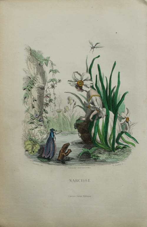 This charming lithographic print is from Les Fleurs Animees by Jean Jacques Grandville published in 1846.