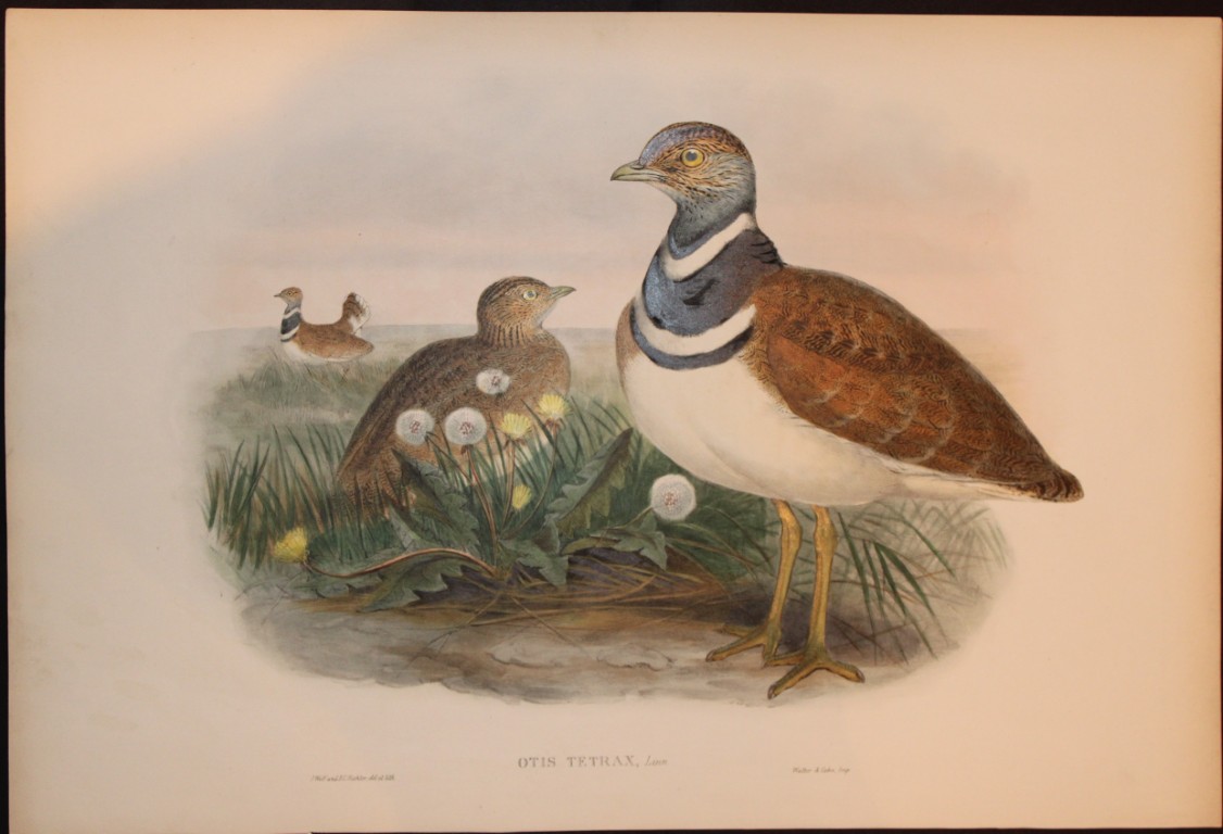 This original lithograph of the Little Bustard (Otis tetrax) is from John Gould’s Birds of Great Britain, issued in 25 parts between 1862 and 1873. This plate is number 18 from volume 4 of this work and was drawn and lithographed by Joseph Wolf & HC Richter.