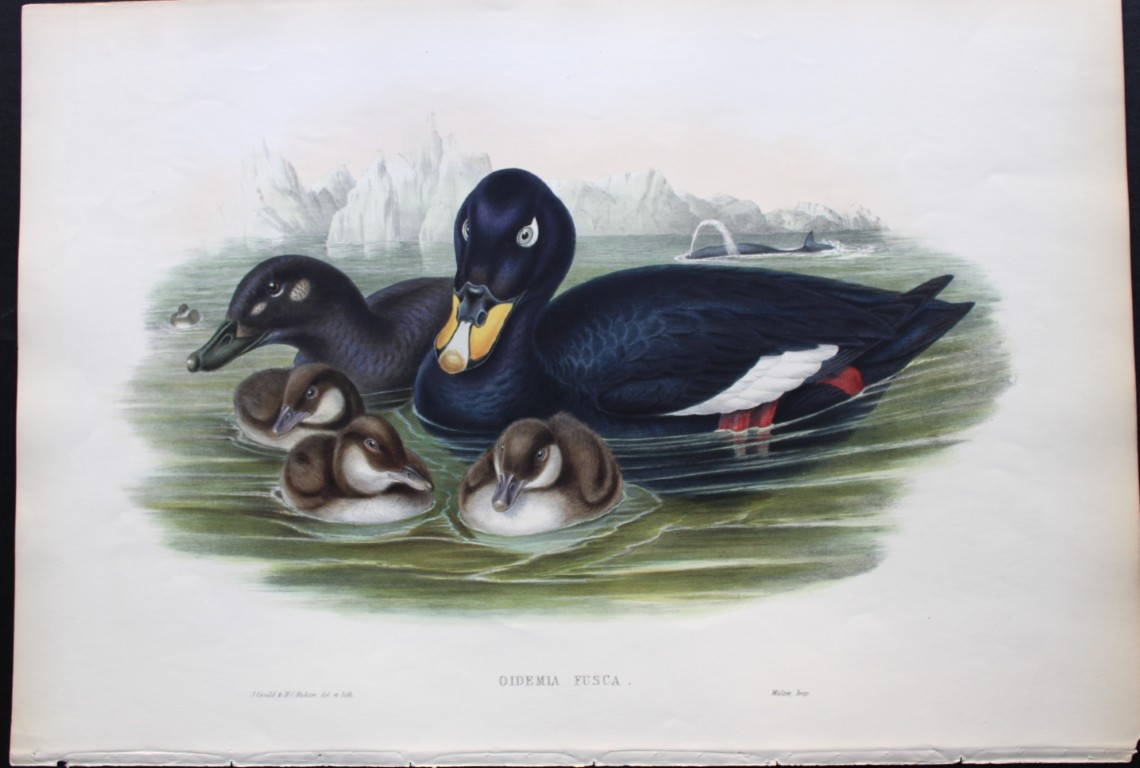 This original lithograph of Velvet Scoter (Oidemia Fusca) is from John Gould’s Birds of Great Britain, issued in 25 parts between 1862 and 1873. This plate is number 29 from volume 5 of this work and was drawn and lithographed by John Gould & HC Richter.