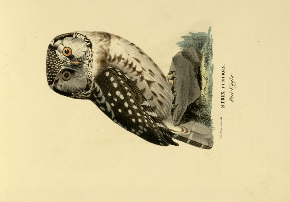 Lot 111027: M. von Wright - Folio lithograph of Northern Hawk Owl 1924