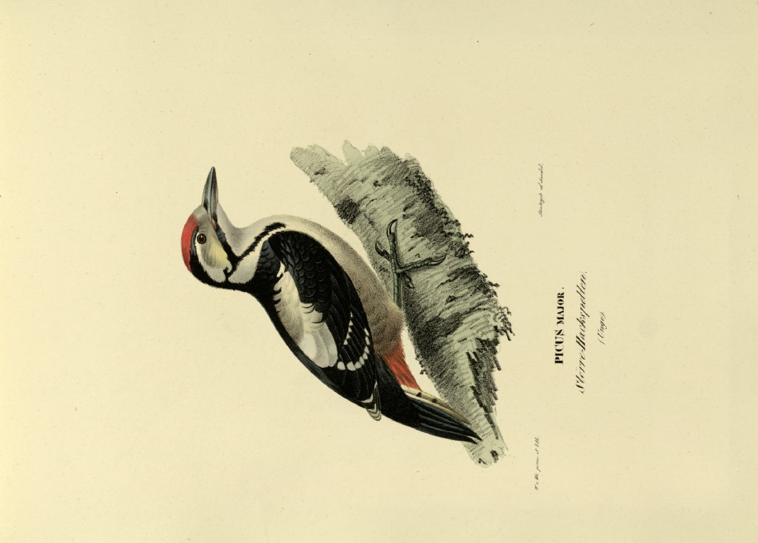 Lot 111093: M. von Wright - Folio lithograph of Great Spotted Woodpecker 1924