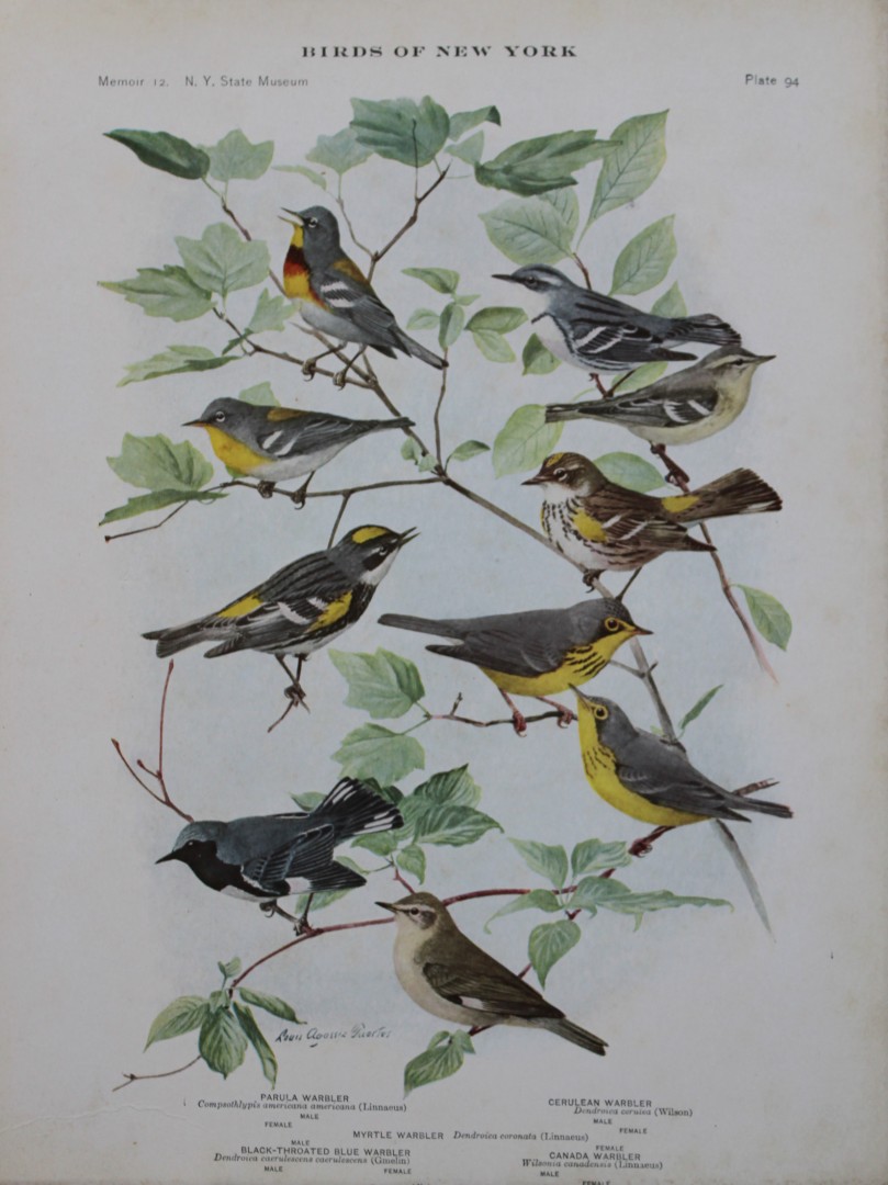 Lot 118116: L Agassiz Fuertes - Chromolithograph of Warblers 1910