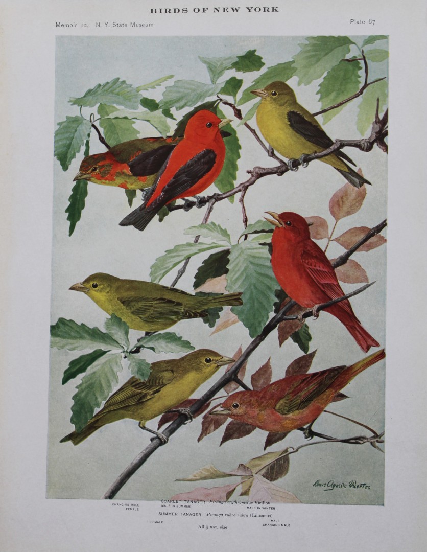 Lot 118137: L Agassiz Fuertes - Chromolithograph of Tanagers 1910