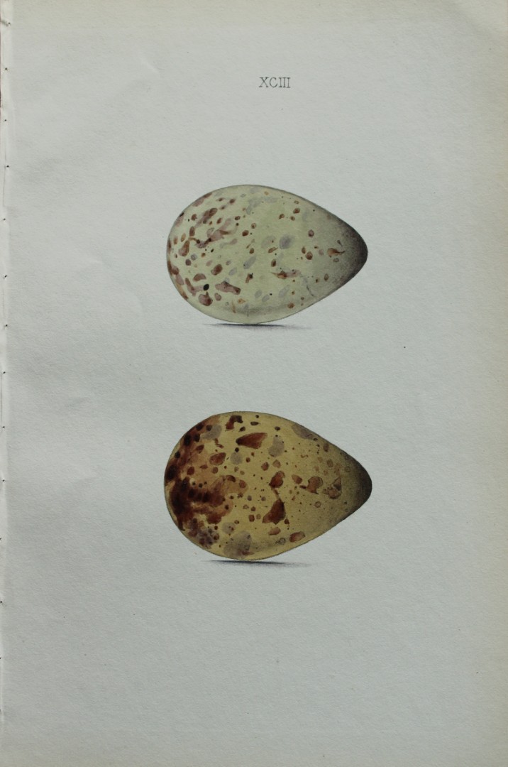 This hand-coloured engraving of bird eggs is from the Coloured Illustrations of the Eggs of British Birds accompanied with descriptions of the Eggs and Nests by William C Hewitson, published by Jan Van Voorst, London, 1856.