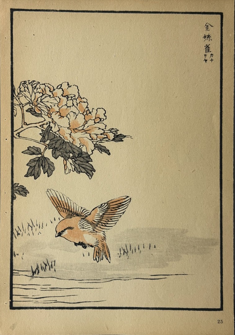 These woodblocks prints are from Vogel und Blumen (Birds and flowers) from Japanese master woodblock prints after the artist Kono Bairei.