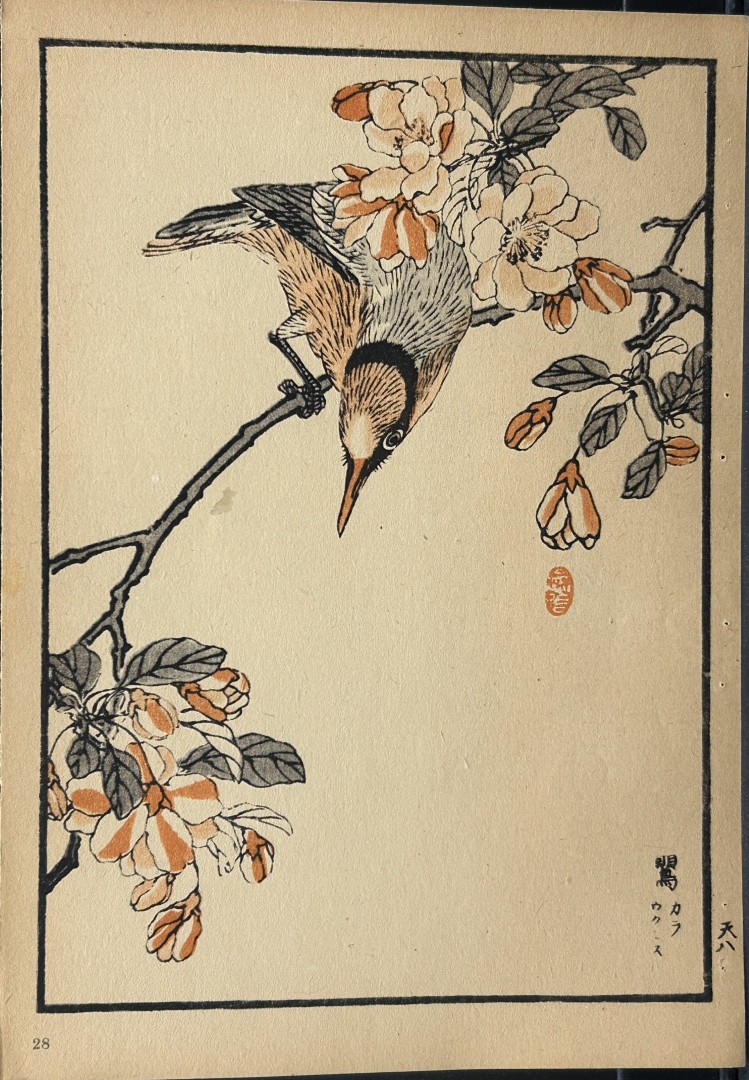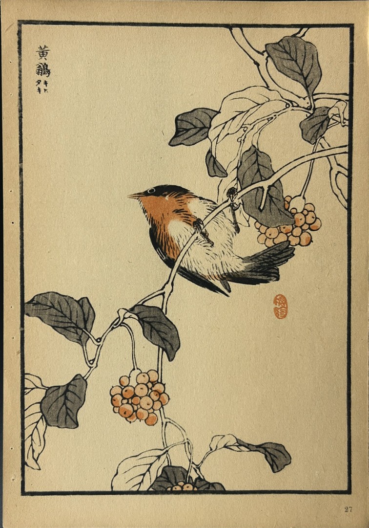 These woodblocks prints are from Vogel und Blumen (Birds and flowers) from Japanese master woodblock prints after the artist Kono Bairei.