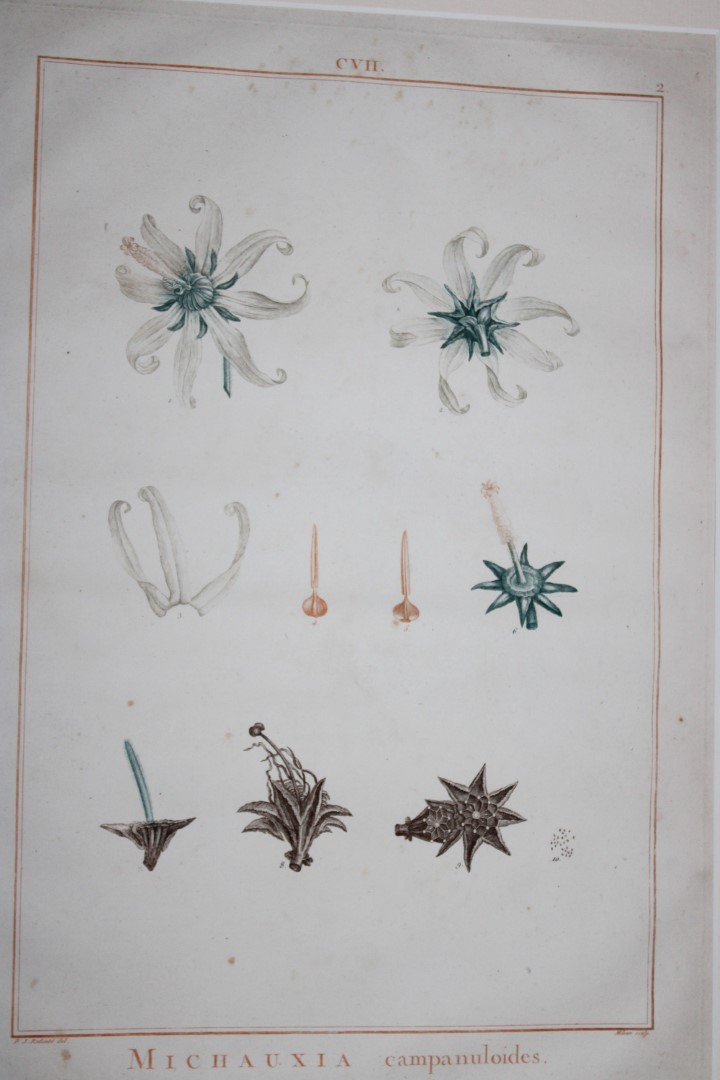 This rare line engraving of Michauxia campanuloides is Plate CVII from Stirpes novae, aut minus cognitae, quas descriptionibus eticonibus illustravit by Charles-Louis L’Heritier de Brutelle. Published by Philippe-Dionysius Pierres, Paris 1784-1785.