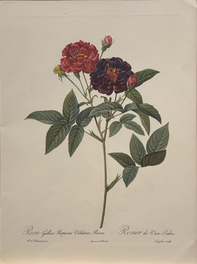 This print, originally drawn by Pierre-Joseph Redoute is from Roses 2, edited and selected by Eva Mannering. Published in London by Ariel Press, 1956. First Edition.